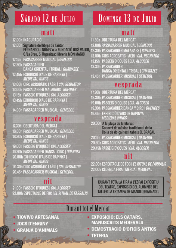 Aquest cap de setmana, Banyeres de Mariola es transforma en un veritable escenari medieval amb la celebració de la Fira de la Malena i Mercat Medieval, els dies 12 i 13 de juliol. L’esdeveniment, organitzat per la Comissió de Festes “La Malena” amb la col·laboració de l’Ajuntament i el patrocini de la Diputació d’Alacant, oferiràx una variada programació d’activitats per a tots els públics.