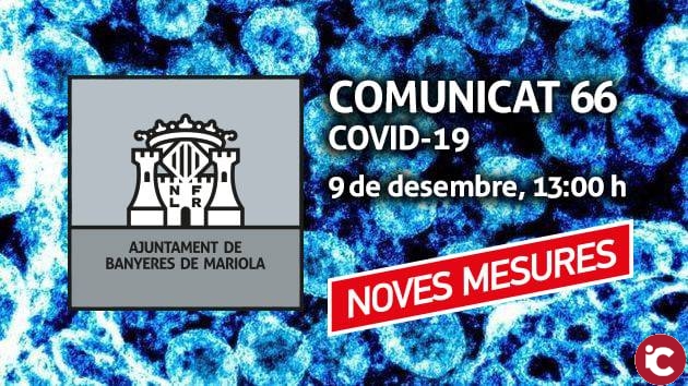 Vist el nombre de casos positius actius que té la població en aquests moments, menys de 25, les mesures restrictives locals queden suprimides (segons Comunicat 17 de novembre, 21.00 hores), a partir de demà 10 de desembre. Aquest fet no ha de suposar una relaxació de la responsabilitat. Hem de continuar alerta aquestes setmanes per poder gaudir duns Nadals sense casos actius.