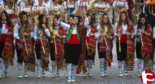 Cuatro mil personas, entre festeros y músicos, desfilaron el sábado brindando al numeroso público un espectáculo repleto de colorido. Y eso a pesar de la fina lluvia que acompañó la mayor parte del acto, pero que no impidió el disfrute de los asistentes.