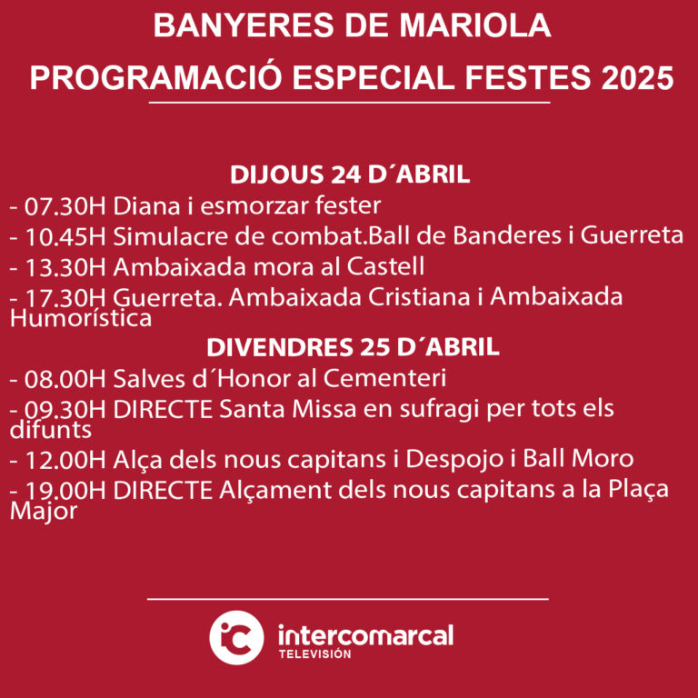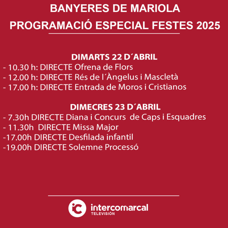 A més, durant aquest dies, Intercomarcal Televisió Alcoià tindrà una programació pròpia de les Festes de Moros i Cristians de Banyeres de Mariola.