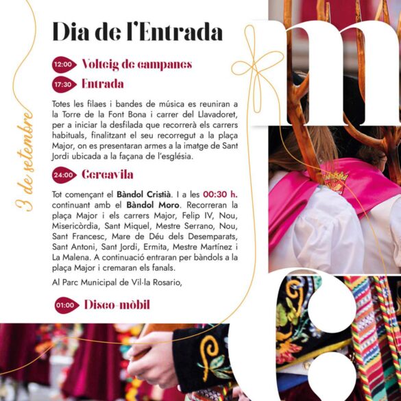 Banyeres celebra les seues festes de Moros i Cristians a l’abril i també a setembre, quan es rememora l’arribada a Banyeres la Relíquia de Sant Jordi en 1780, traslladada des de Roma pel Pare Juan Bautista Doménech. Amb aquest motiu, els habitants de Banyeres tornen a reviure els actes de les Festes de Moros i Cristians; es tornen a vestir, torna la música, el color i la pólvora. El divendres per la vesprada es realitzen jocs infantils i una desfilada de tots els xiquets de la localitat. El dissabte comencen els actes amb un volteig general de campanes i per la vesprada l’entrada, en la qual s’anuncien les Capitanies 2023. El dia acaba amb un cercavila a mitja nit. A l’endemà, el dia de la Relíquia es realitza la diana, l’esmorzar en les comparses i la Solemne Missa Major. Per la vesprada la desfilada infantil, la processó i a mitjà nit el castell de focs artificials que dóna per clausurada la festa.