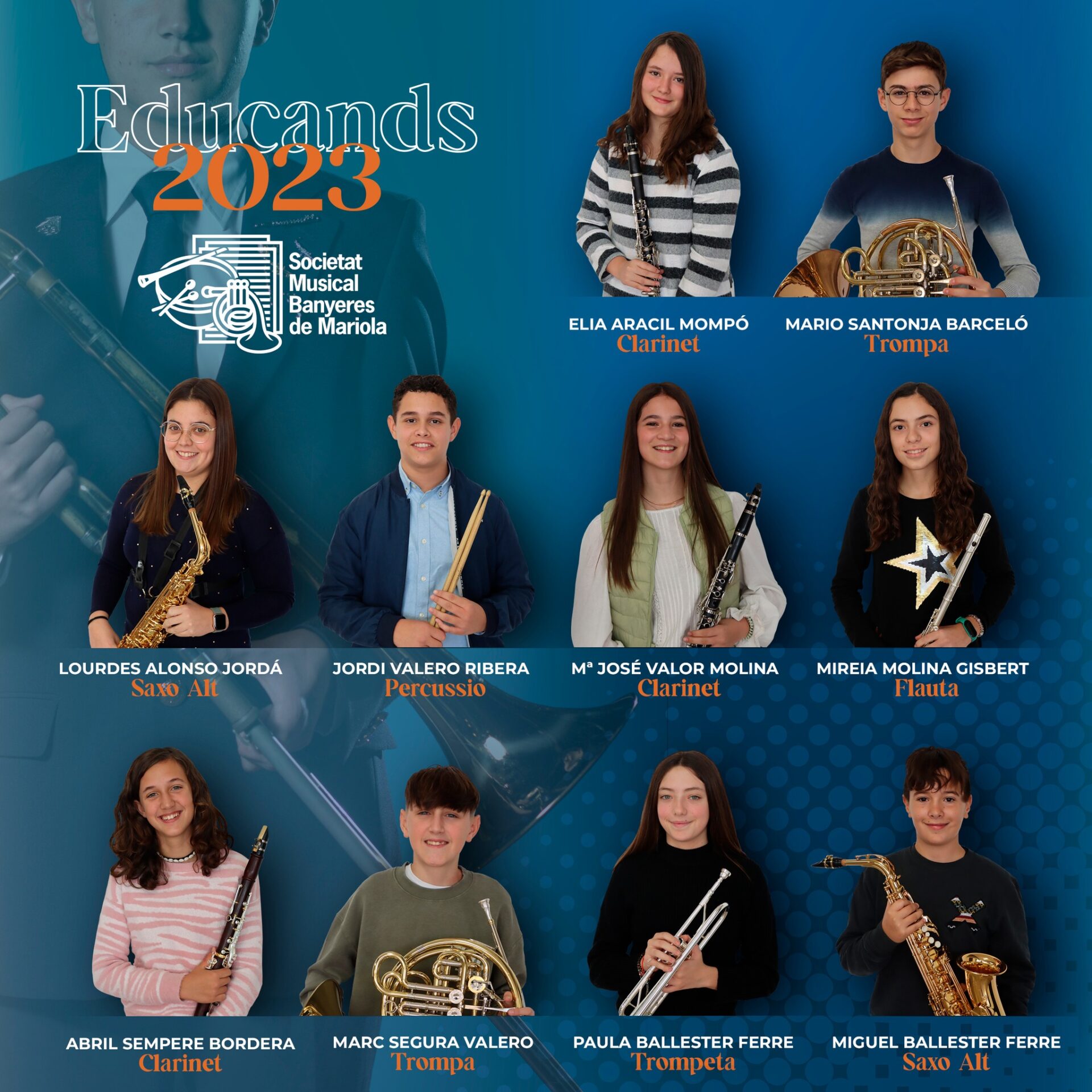Enguany, a la Societat Musical Banyeres de Mariola, són 10 els nous músics que, després de completar la primera etapa de formació, entren a formar part de la Societat.
