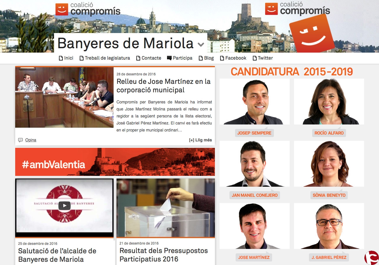 Els membres de Compromís han expressat a Jose Martínez el seu agraïment per tot aquest temps que ha dedicat al municipi des de la responsabilitat de les regidories que ha dirigit i li han desitjat tot el millor en la nova etapa que comença. De la mateixa manera, Compromís dóna les gràcies a José Gabriel Pérez per assumir la responsabilitat de continuar el projecte polític de la coalició des de lAjuntament i per la seua generositat en acceptar dedicar el seu temps i treball al poble de Banyeres de Mariola.