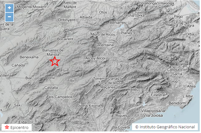 Terremoto de magnitud 3.7 mbLg, con epicentro en Banyeres de Mariola, hace temblar muchas poblaciones del Vinalopó, l´Alcoià y l´Alacantí