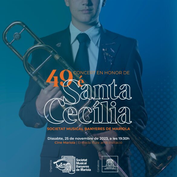 – El nou recinte municipal del Cine/Sala Mariola acollirà el 49é Concert de Santa Cecília, dissabte 25 de novembre, a les 19:30 h, i en aquesta nova localització hem pogut incrementar l’aforament respecte als anys anteriors. Les entrades per al concert estaran disponibles a partir de demà dilluns, 13 de novembre a l’Oficina de Turisme. Són gratuïtes fins a esgotar les existències.
