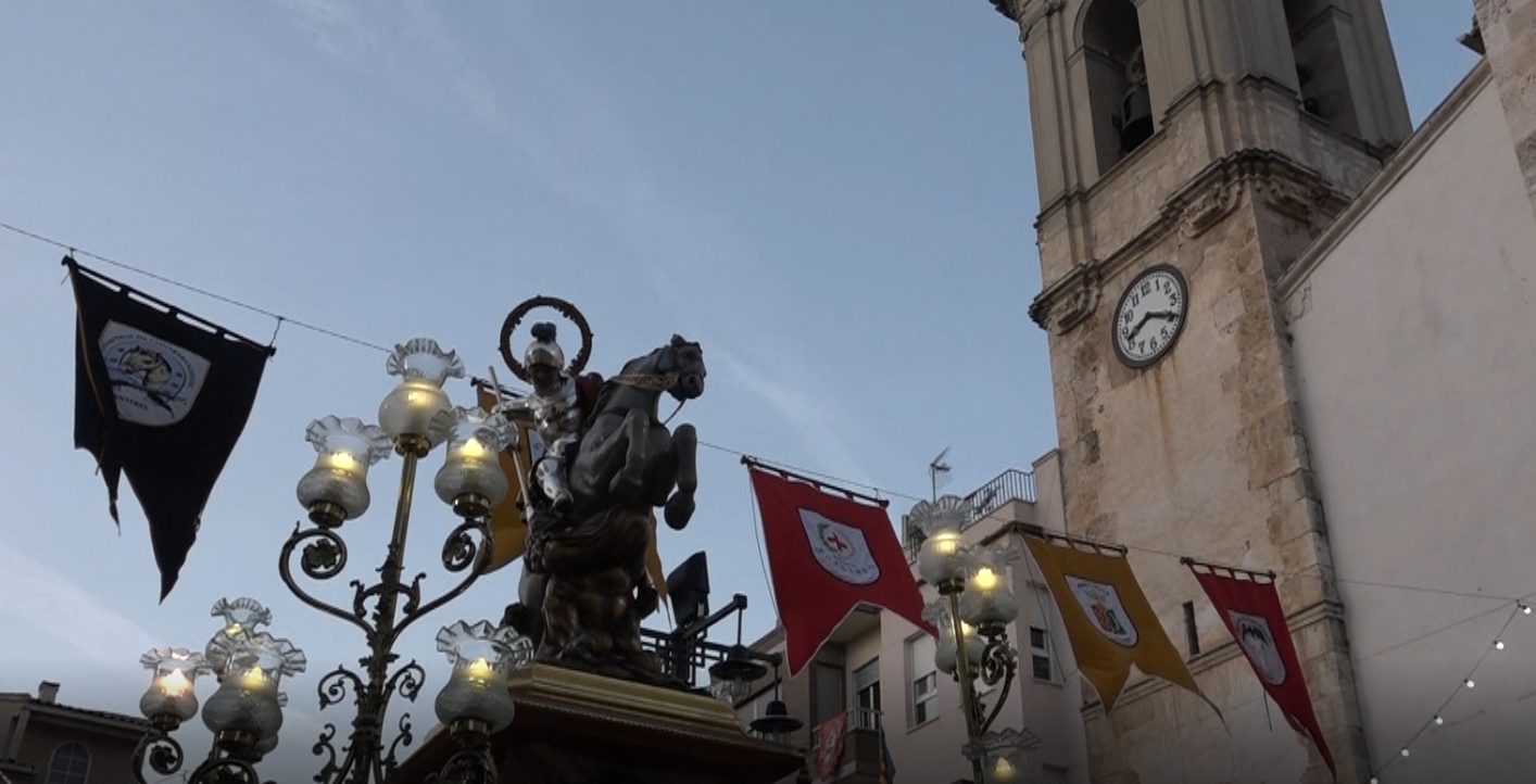 Dissabte 21 dabril, a les 19:00 h. Trasllat de la imatge del Patró Sant Jordi des de la seua ermita al temple parroquial de la Mare de Déu de la Misericòrdia, seguint els carrers Sant Jordi, plaça Major, carrer Major, Felip IV, Sant Jaume, Àngel Torró i plaça Major, acompanyat per les banderes de totes les filaes, els capitans, les bandereres, els presidents, la Comissió de Festes de Sant Jordi, la Confraria de Sant Jordi, els festers, les autoritats i el poble. A leixida del Sant es disparaven 21 salves en el seu honor.