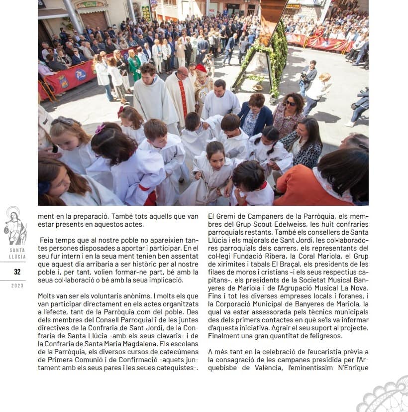 Artículo publicado en el programa de las fiestas de 2023, de interés turístico local, que Banyeres de Mariola celebra en honor a Santa Lucía virgen y mártir.