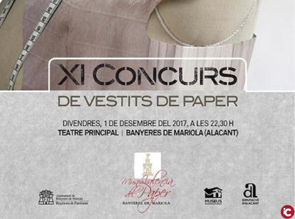 El Museu Valencià del Paper de Banyeres de Mariola organitzó ahir el XI Concurs de Confecció de Vestits de Paper, el event va començar a les 22:30 h, al Teatre Principal de Banyeres de Mariola.