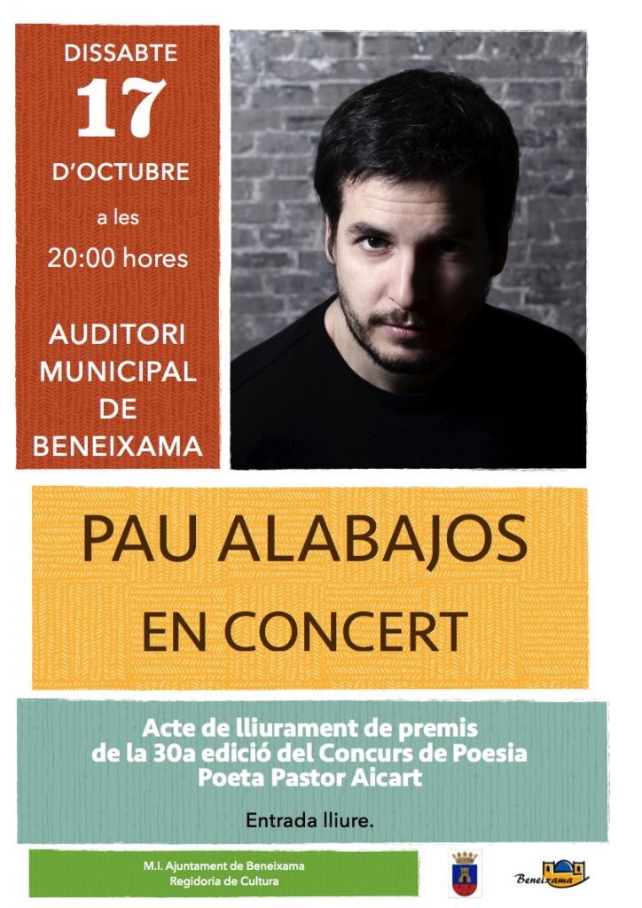 En acabar l´entrega de premis tindrem un concert de Pau Alabajos. La entrada és lliure.