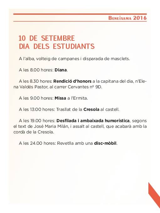 El 10 de setembre , dia dels estudiants en Beneixama es van celebrar els següents actes: