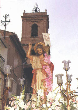 El altar está coronado por la figura del Cordero. Junto con dos ángeles majestuosos. Además de una imagen del Patrón al que está dedicada la Iglesia, San Juan Bautista, con un cuadro de la decapitación del Bautista, justo encima del altar mayor.