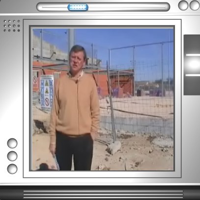 El alcalde de Beneixama, nos comenta la ubicación del telón en el auditorio municipal. Es una de las últimas actuaciones que se realizan.