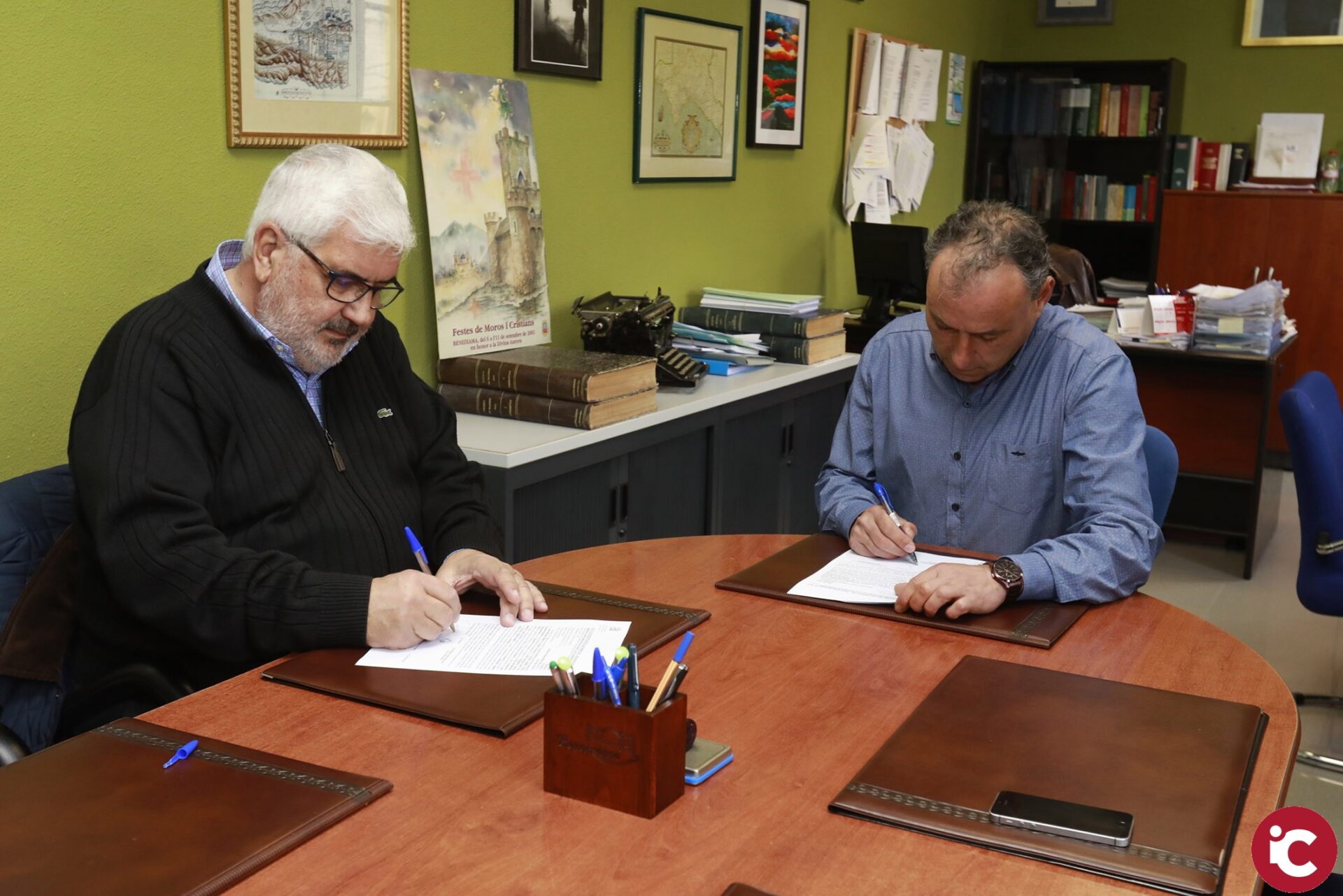 El diputado de Carreteras, Juan Molina, y el alcalde de la localidad, Vicente Ibáñez, firman el acta de recepción de esta actuación