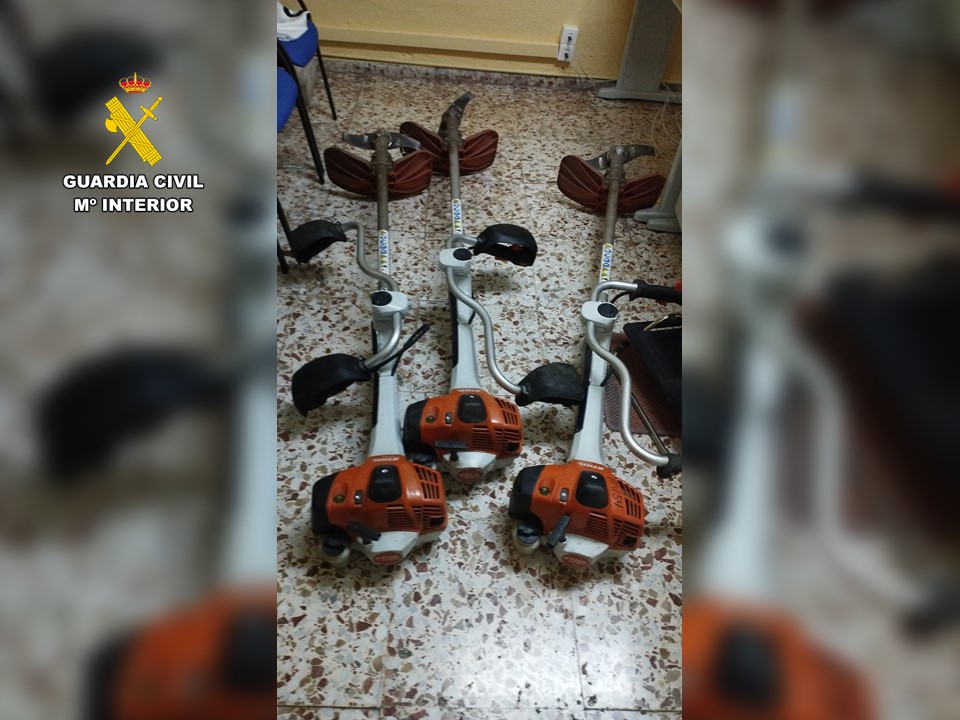 S’han recuperat tres desbrossadores, valorades en aproximadament 5.000 euros, que han sigut retornades al seu amo, juntament amb diverses eines i un visor nocturn