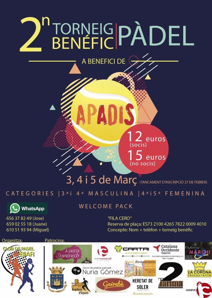 2º Torneo de Padel Benéfico organizado por el Club de Padel Biar y que este año será a beneficio de APADIS.