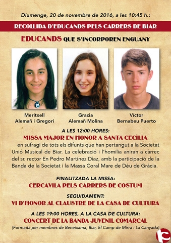 Arreplegada nous educandos de la Societat Unió Musical de Biar 20/11/2016 from Intercomarcal TV on Vimeo.