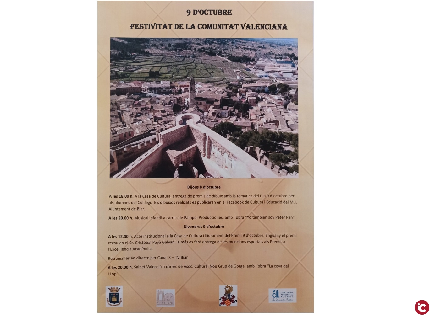 NP. 07/10/2020. Biar celebra la festividad el 9 de Octubre. El programa de actos de esta celebración mantiene el acto institucional que cada año se celebra en la Casa de la Cultura. En 2020, la entrada estará limitada y se guardarán las distancias y normas de seguridad implementadas para frenar los contagio por coronavirus. Será el mismo día 9 a las 12:00 horas.