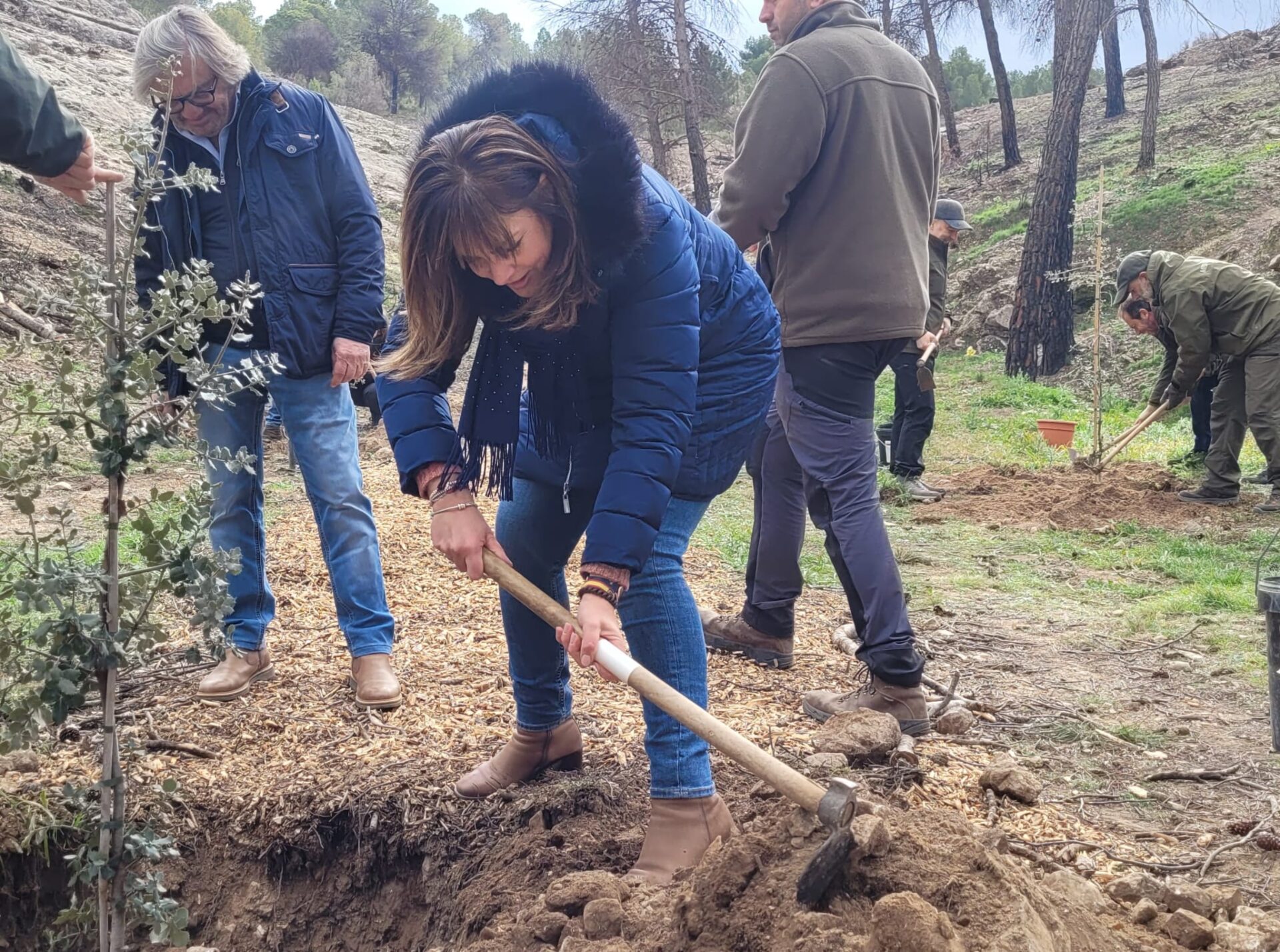 L’alcaldessa, el secretari autonòmic i el director general de Medi Natural i Animal, Miguel Halabi, han acompanyat els participants durant el Dia de l’Arbre, reafirmant el compromís del govern autonòmic amb la reforestació i la conservació del medi ambient. Per a simbolitzar el seu suport a la regeneració de l’entorn, també han plantat un arbre junt amb els estudiants.
