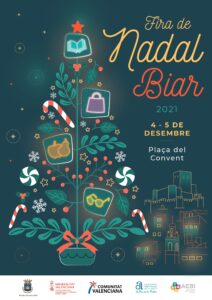 La vila de Biar presenta el cartell anunciador de la Fira de Nadal que es durà a terme el cap de setmana del 4 i 5 de desembre en la Plaça del Convent. De nou la il·lusió arribarà als carrers de la localitat per a poder compartir els grans productes locals, així com un ampli ventall d’activitats que prompte donarem a conéixer. El nadal es prepara amb gran alegria i Biar tenen molt a compartir i celebrar.