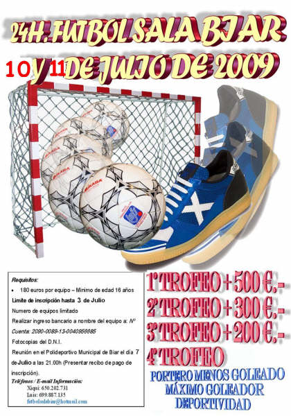 24H. Futbol Sala Biar – 10 y 11 de Julio de 2009, también cambian las fechas de plazo de inscripción y reunión.