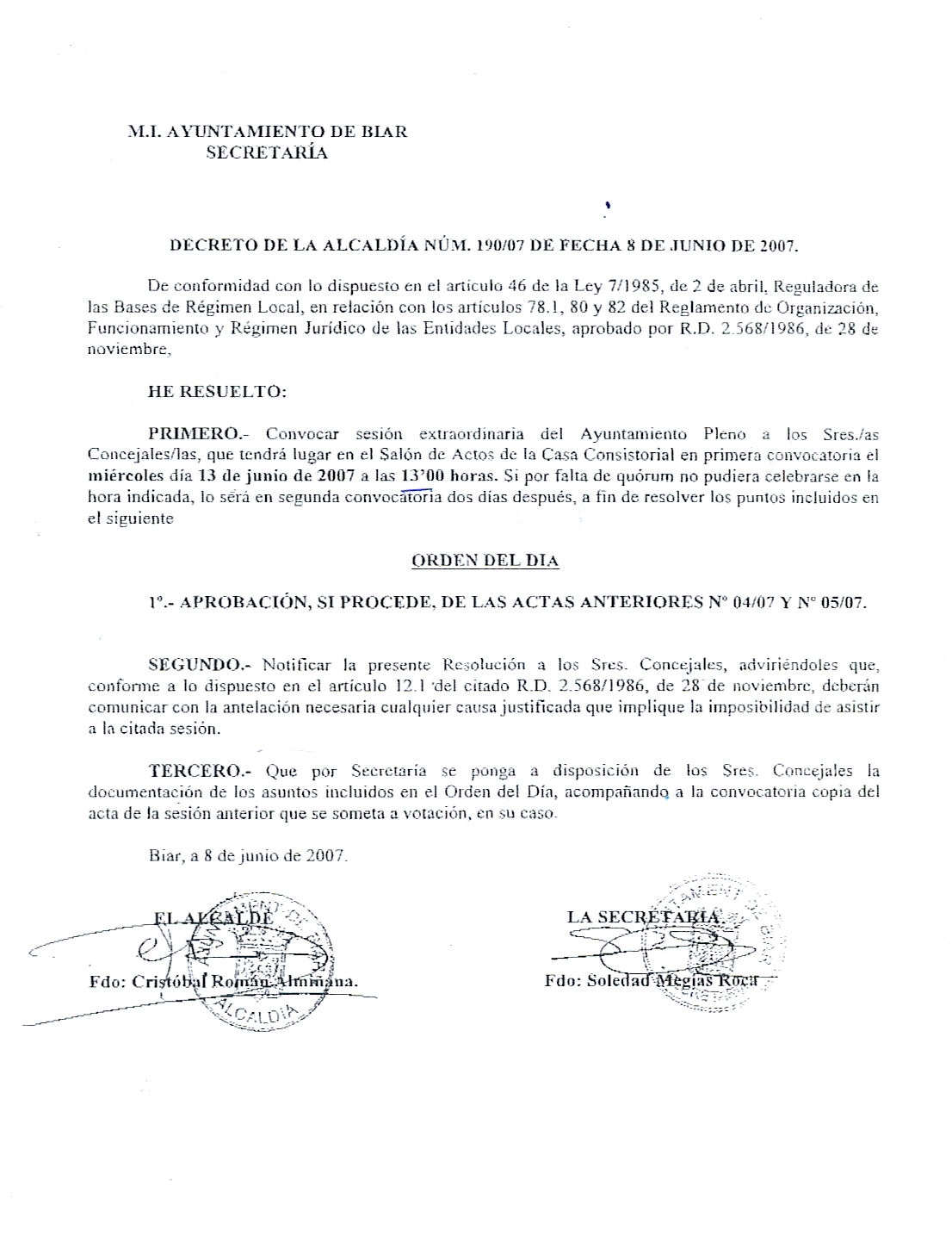Se convoca sesión extraordinaria del Ayuntamiento Pleno el día Miércoles 13 de Junio a las 13 horas.