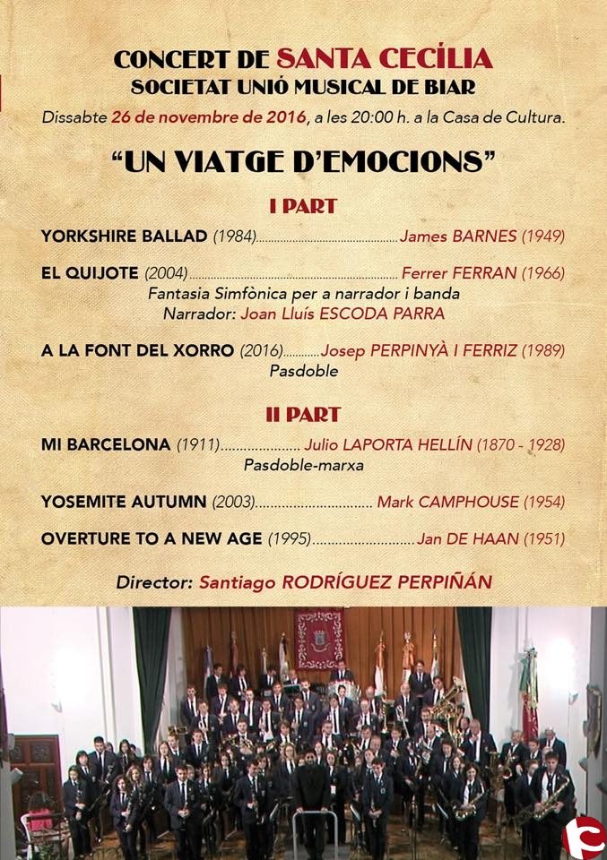 El passat dissabte 26 de noviembre es va celebrar el Concert de Santa Cecília de la Societat Unió Musical de Biar a la Casa de Cultura.