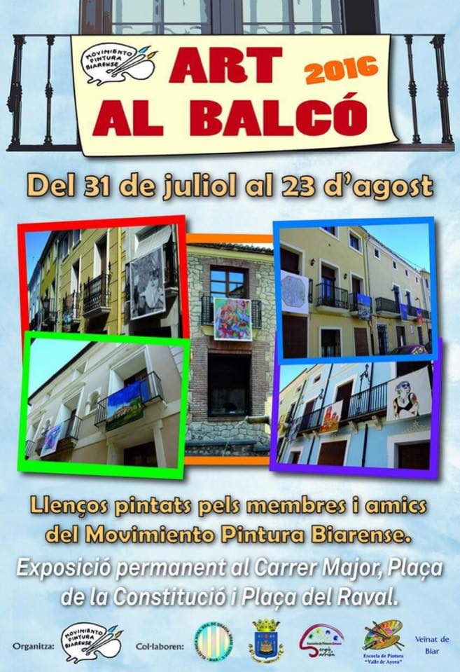 Desde el MOVIMIENTO de PINTURA BIARENSE nos envían el cartel anunciador de la próxima actividad de esta Asociación, Art al balcó 2016, que inaugurarán el próximo domingo día 31 julio, a las 19,30 h.