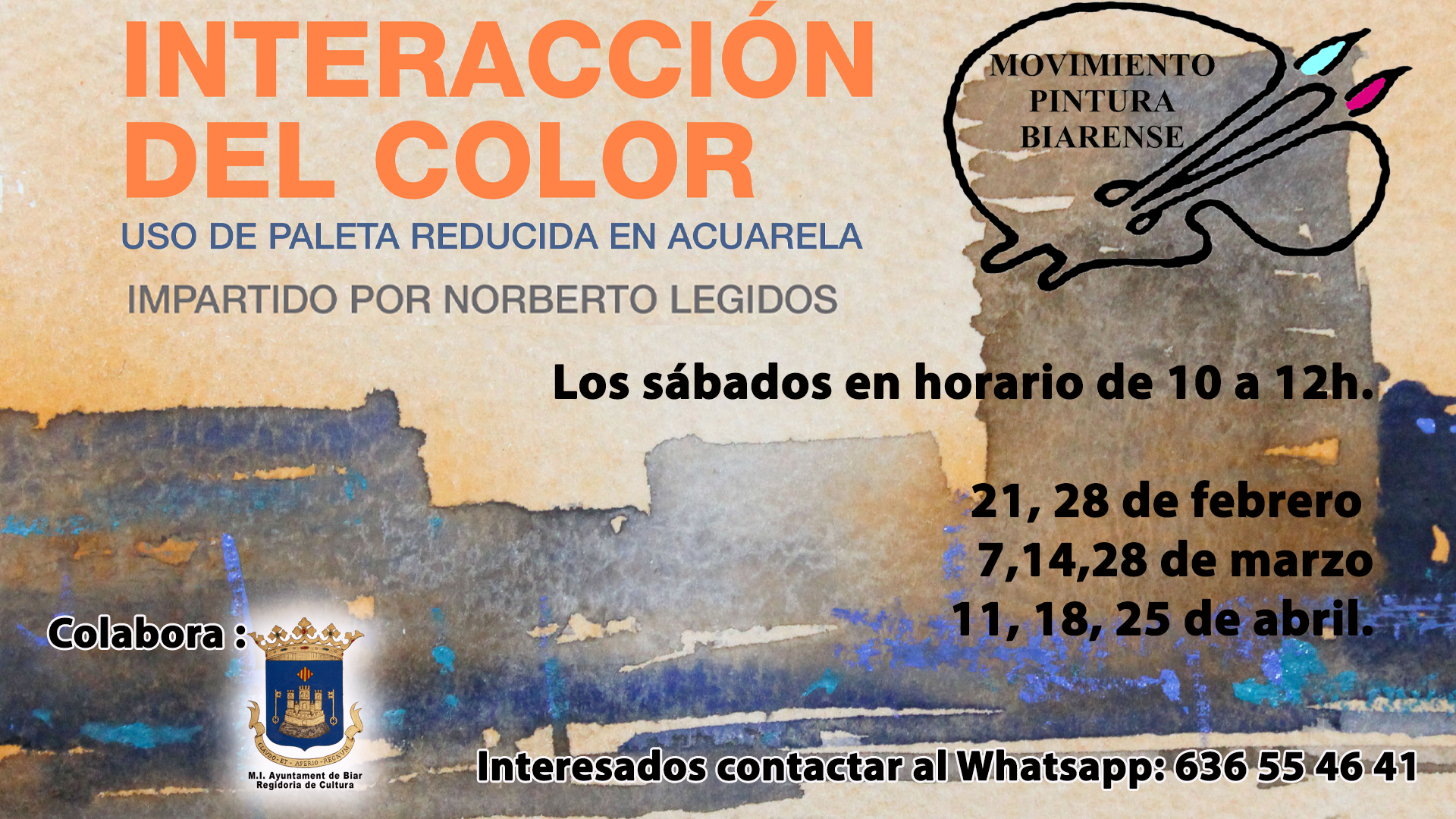 El Movimiento Pintura Biarense continúa su labor de dinamización cultural y formación artística con el anuncio de su próximo taller monográfico. En esta ocasión, la entidad apuesta por la delicadeza y precisión de la acuarela, de la mano del reconocido artista multidisciplinar Norberto Legidos.