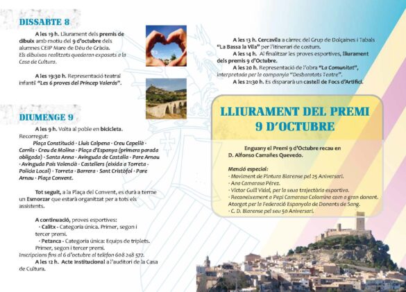 S’adjunta programa d’actes amb motiu de la festivitat del 9 d’Octubre, Dia de la Comunitat Valenciana.