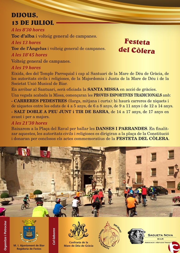 Aquest diumenge 9 de juliol comencen les festes de Sant Cristóbal a Biar, que es perllongaran fins al dimarts 12 de juliol i que comptaran amb diversos actes com la processó del sant, misses i activitats lúdiques.