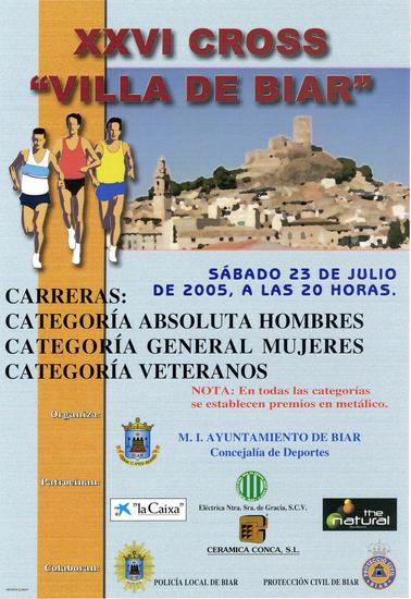 El próximo sábado 23 de Julio, se disputará en el municipio de Biar, el XXVI Cross «Villa de Biar» a partir de las 20:00 h., en la Plaza de la Constitución.