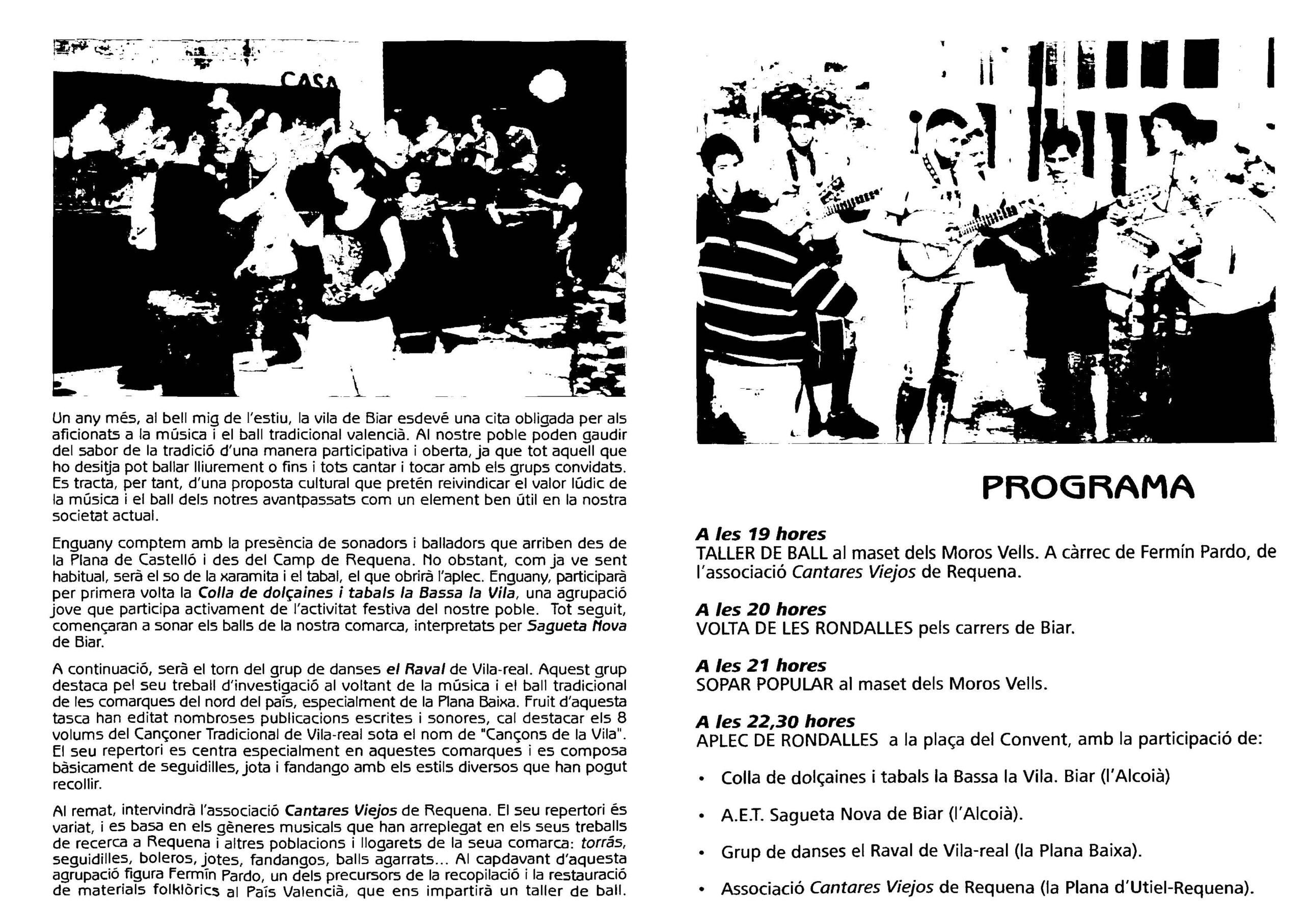 El próximo sábado 31 de julio, y de la mano de l´Associació d´estudis tradicionals «Sagueta Nova» de Biar, se llevará a cabo el «VII Aplec de Rondalles», en la plaza del convento a las 22´30 h.