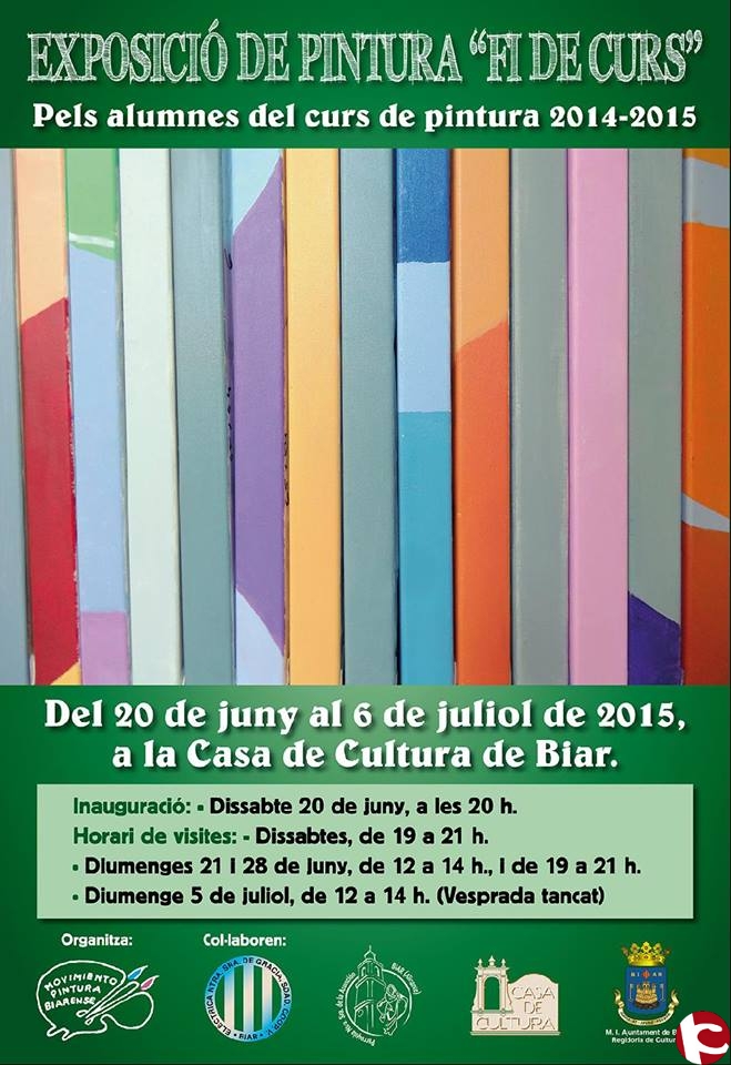 Del 20 de juny al 6 de juliol de 2015, es durà a terme a l´Auditori de la Casa de Cultura una exposició de pintura com a cloenda del curs de pintura 2014-2015 organitzat pel Moviment de Pintura Biarense.