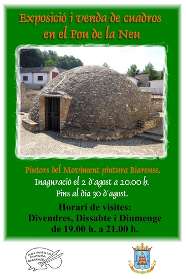 El próximo domingo, 2 de agosto, a las 20 h.,va a tener lugar en el Pozo de la Nieve de Biar, la inauguración de una exposición con venta de cuadros a cargo de pintores del Movimiento de Pintura Biarense.