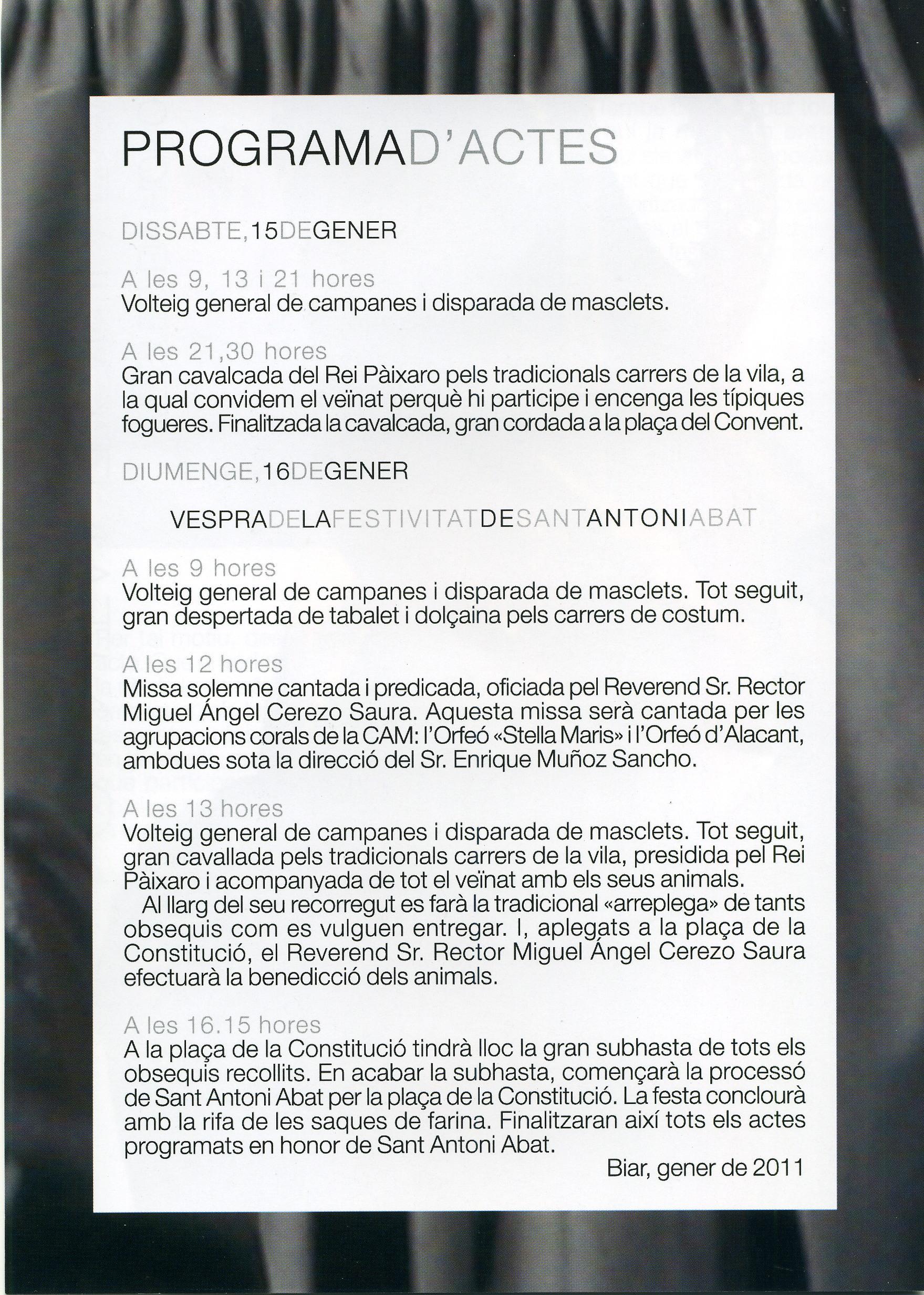 Se adjunta programa de actos a celebrar con motivo de la Festividad de Sant Antoni Abat, patrón de los animales.