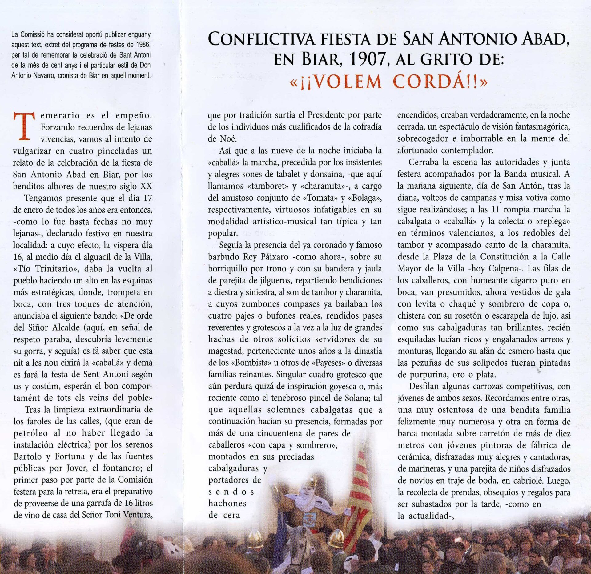 A continuación se adjunta programa de actos a celebrar con motivo de la Festividad de San Antonio Abad, dentro de los cuáles se incluye la figura del Rei Pàixaro.