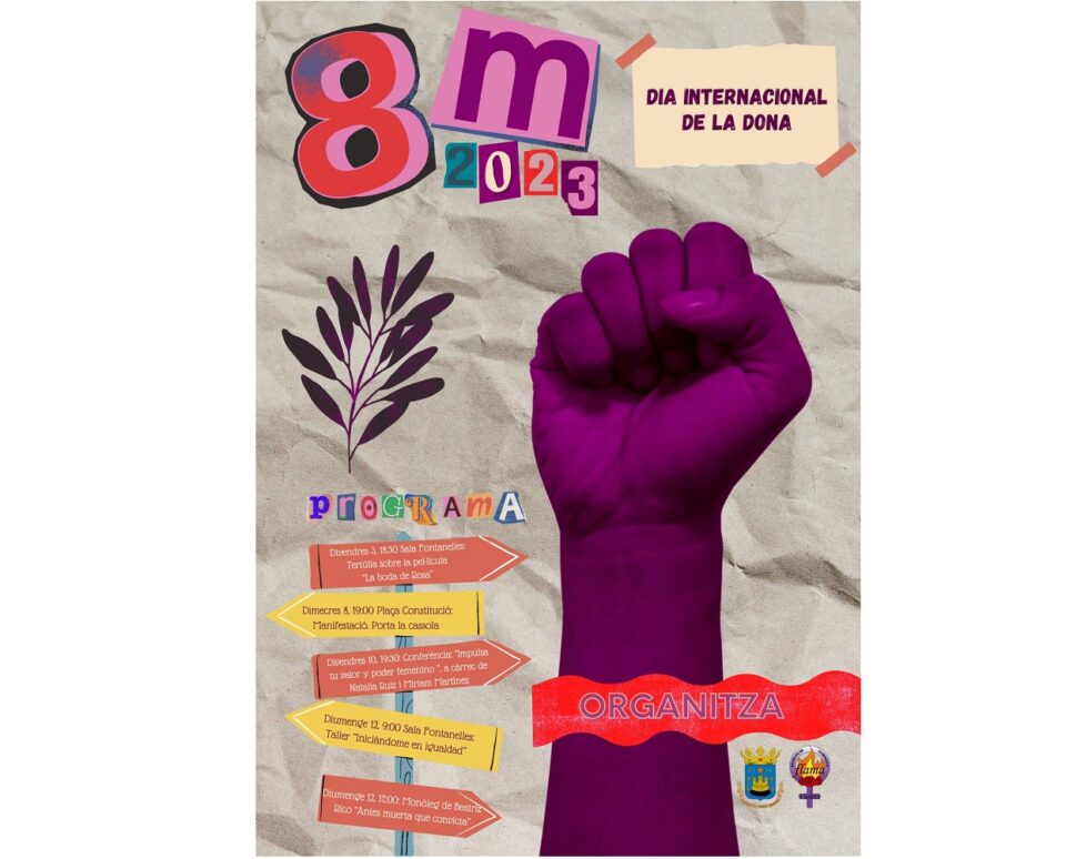 La programación del Día de la Mujer se inició el pasado viernes con la proyección de la aclamada película “La boda de Rosa”. La concejala de Igualdad, Amparo Albero, ha indicado que “el programa del Día de la Mujer se plantea en colaboración con la asociación Flama y trabaja en tres ejes: el lúdico, el didáctico y el cultural; todo bajo el paraguas de la reivindicación femenista para la lograr un mundo más igualitario y salvar las barreras de las desigualdades entre hombres y mujeres”.