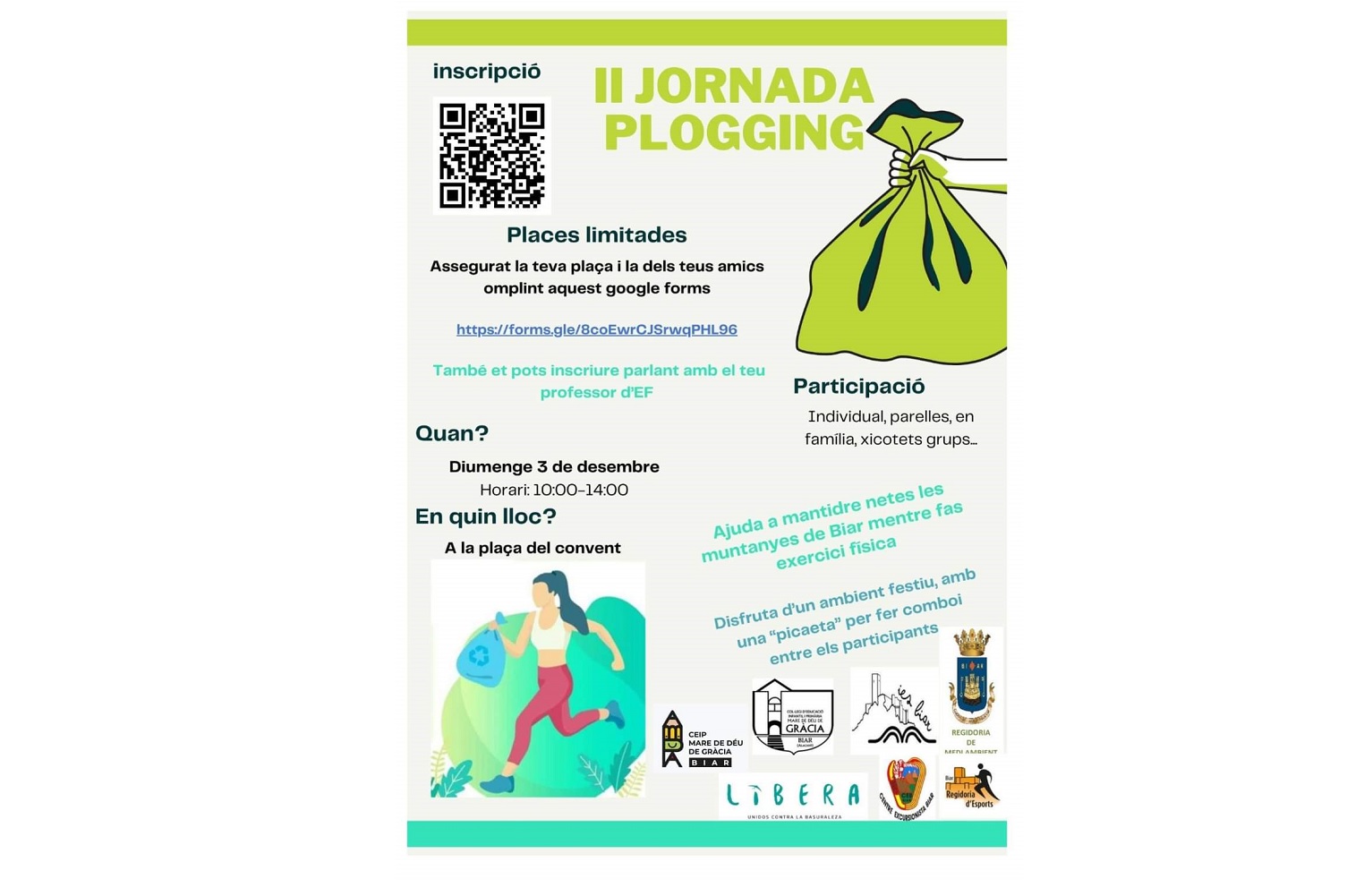 II Jornada Plogging a la Vila de Biar, diumenge 3 de desembre de 10 a 14 hores, amb eixida des de la plaça del Convent