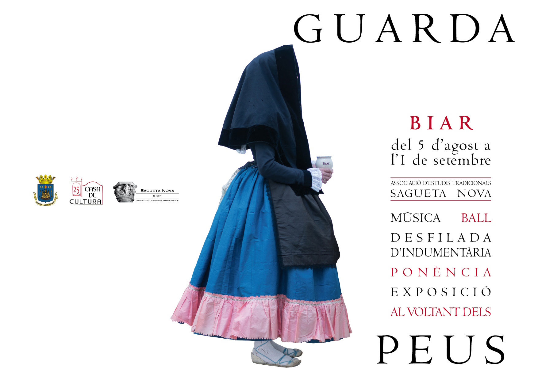 L’Associació d’Estudis Tradicionals «Sagueta Nova» de Biar està preparant unes activitats per a la divulgació de la indumentària tradicional valenciana. Estes activitats se centraran en els guardapeus, les faldes de seda que les dones valencianes van portar per a mudar durant tot el segle XVIII i part del XIX. Consistiran en una mostra de música i ball, acompanyada d’una desfilada d’indumentària, que tindrà lloc el pròxim dissabte 5 d’agost. Divendres 11 hi ha programada la inauguració d’una exposició de guardapeus antics i una conferència. Totes les activitats compten amb l’assessorament científic de Mª Victoria Liceras i Vicent Ferrandis, de l’Associació Valenciana d’Indumentaristes.