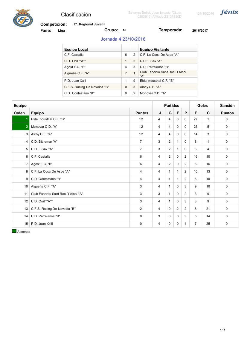 Ens informen des de la Regidoria d´Esports els resultats i les classificacions oficials dels Equips Federats de Biar.