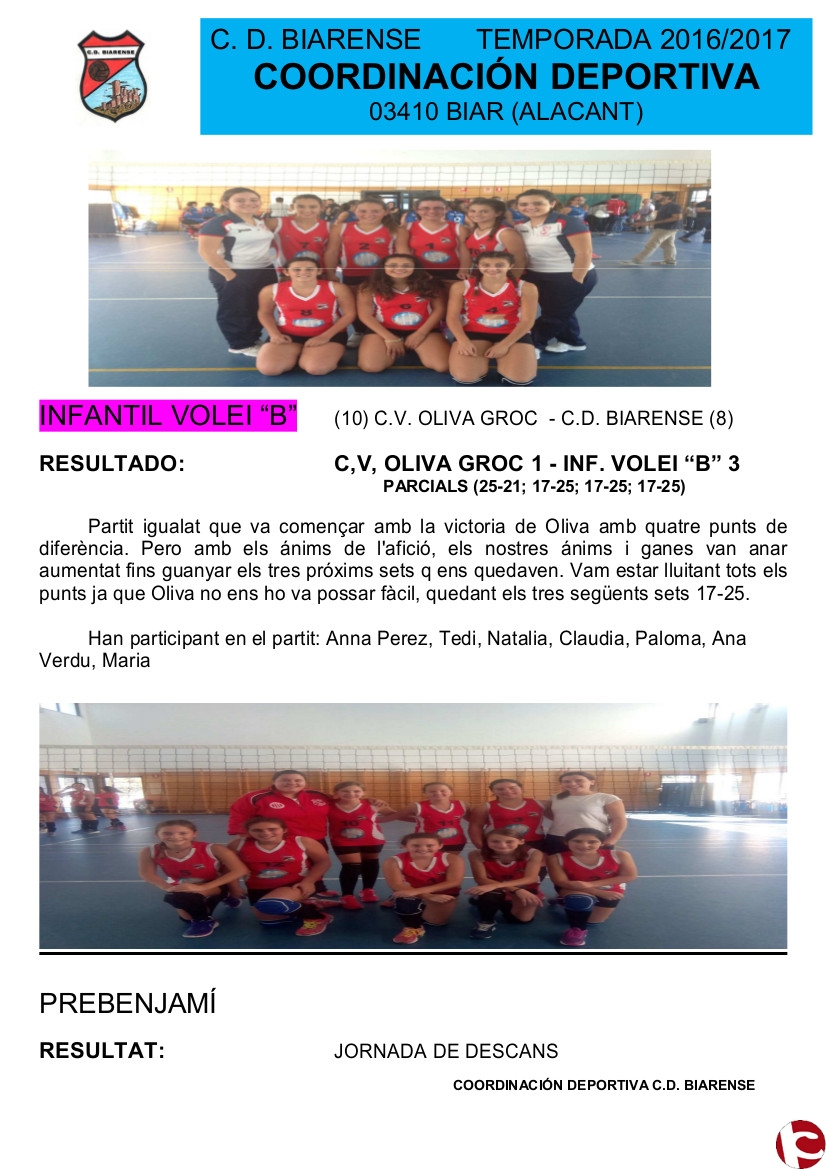 INFANTIL VOLEI “B” (10) C.V. OLIVA GROC – C.D. BIARENSE (8)