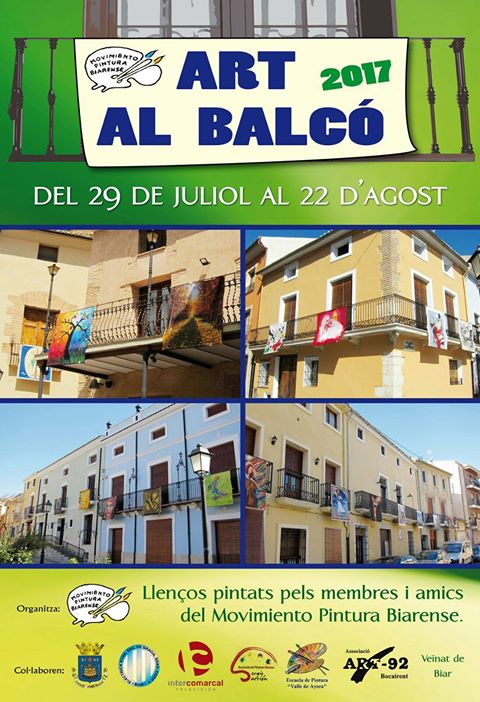 Biar, 30 de julio de 2017.- Desde ayer y hasta el 31 de agosto se celebra en Biar, organizada por el Movimiento Pintura Biarense, la cuarta edición de Art al Balcó, una exposición de pintura en la que las obras de arte no se exhiben ni en museos, ni en galerías ni en salas de exposiciones, sino en los balcones del caso antiguo de la localidad.