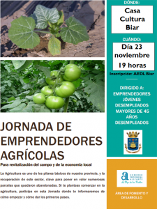 Jornada de emprendedores agrícolas (23 de noviembre a las 19 h.)