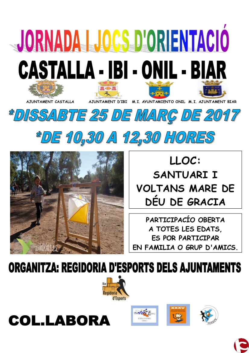 Els Ajuntaments de Castalla, Ibi, Onil i Biar organitzen per al dissabte 25 de març una jornada d’orientació amb jocs al Santuari i Voltans Mare de Déu de Gràcia de 10:30 del matí a 12:30.
