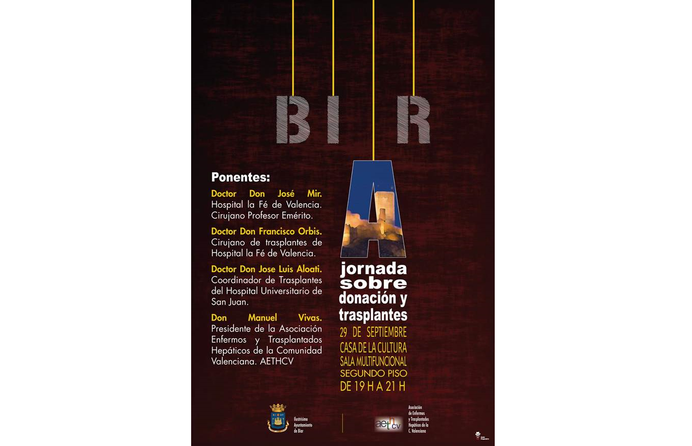 El próximo 29 de septiembre la Casa de Cultura de Biar acogerá la Jornada sobre la donación y trasplantes.