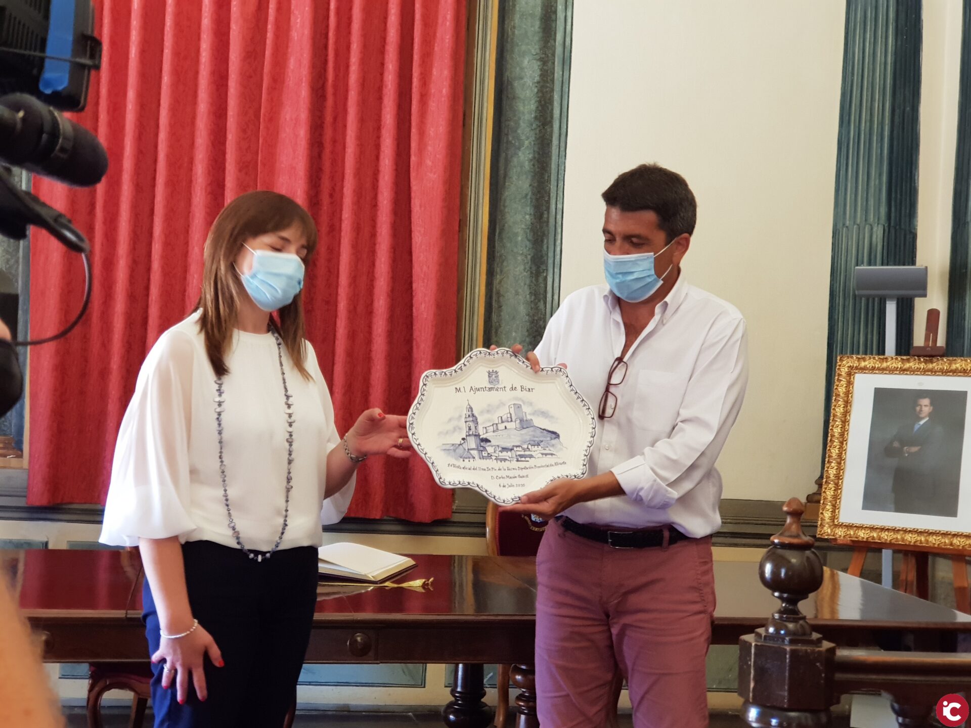 Tras recorrer esta calzada acompañado por Morant, por el de Arquitectura, Juan Francisco Pérez, y por los alcaldes de Biar, Magdalena Martínez, y de Cañada, Juan Molina, el presidente se ha desplazado hasta el consistorio biarense donde, tras firmar en el libro de honor en el Salón de Plenos, se ha reunido con la Junta de Gobierno Local para abordar las necesidades y demandas del municipio. Es la primera vez, que el presidente acudía a Biar como presidente de la Diputación y ha recibido de manos de la alcaldesa un plato de cerámica para conmemorar la ocasión,
