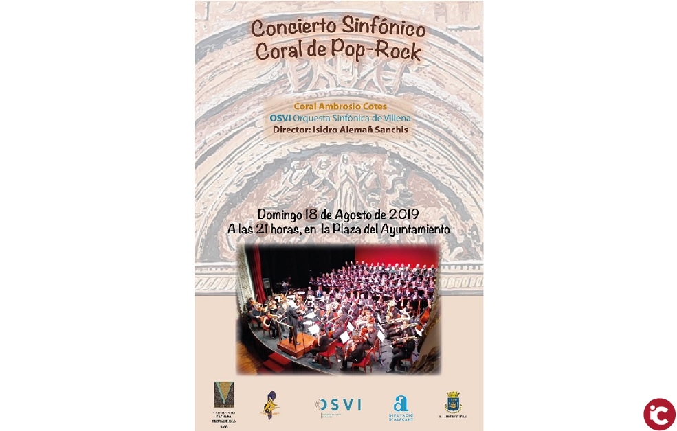 No va a ser un concierto ordinario, será puro espectáculo: Concierto Sinfónico Coral de Pop Rock. Con un repertorio de estilos tan bailables como conocidos del pop rock nacional e Internacional (Nino Bravo, Abba, Queen, Mecano, Mocedades…) y con una formación excepcional. Y es que, estará la Coral Alacant y hasta un grupo de rock. Introck, la obra compuesta por el villenense Toni Molina se volverá a interpretar por todos los músicos tanto de la sinfónica como de la banda de rock, como ya se hiciera en su presentación en el Teatro Chapí. Por si todo esto fuera poco, la expectación es máxima ya que el Ayuntamiento de Jumilla ha querido destinar el mismo día de la Patrona, el 15 de Agosto, para la realización del concierto. Será partir de las 23.00h en el Jardín de la Glorieta de Jumilla.