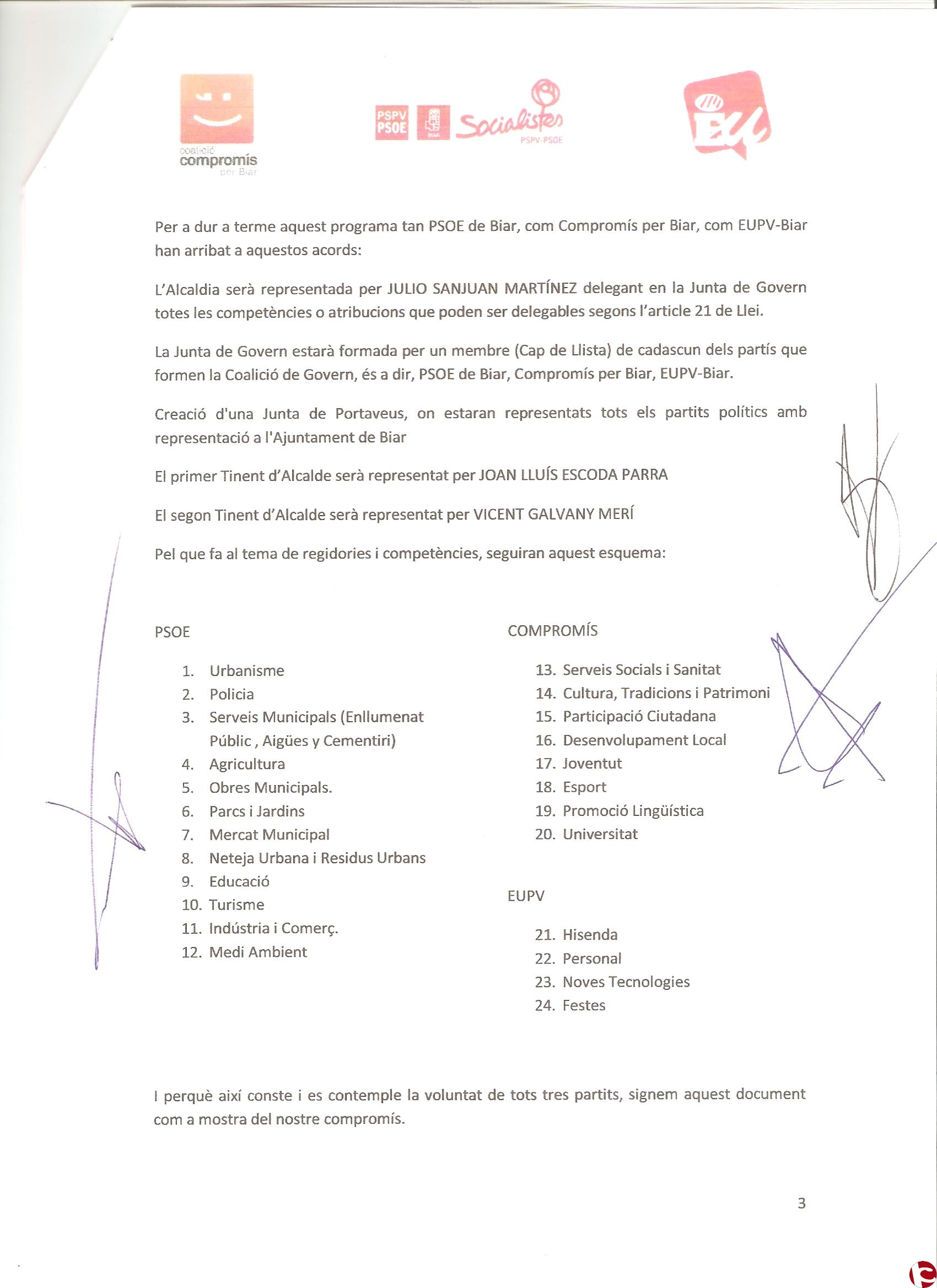 Adjunt ens remeten l´acord de govern que van signar ahir. Esta vesprada han convocat a les 19.00 h. a la Sala Multifuncional de la Casa de Cultura per expossar-lo públicament.