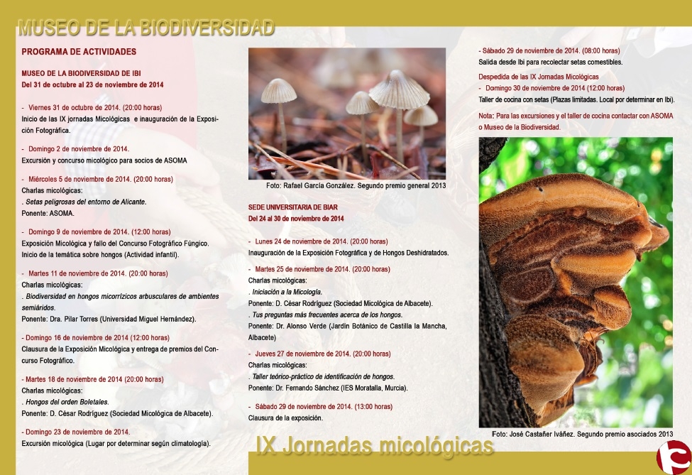 Lugar de celebración: Museo de la Biodiversidad de Ibi y Sede Universitaria de Biar