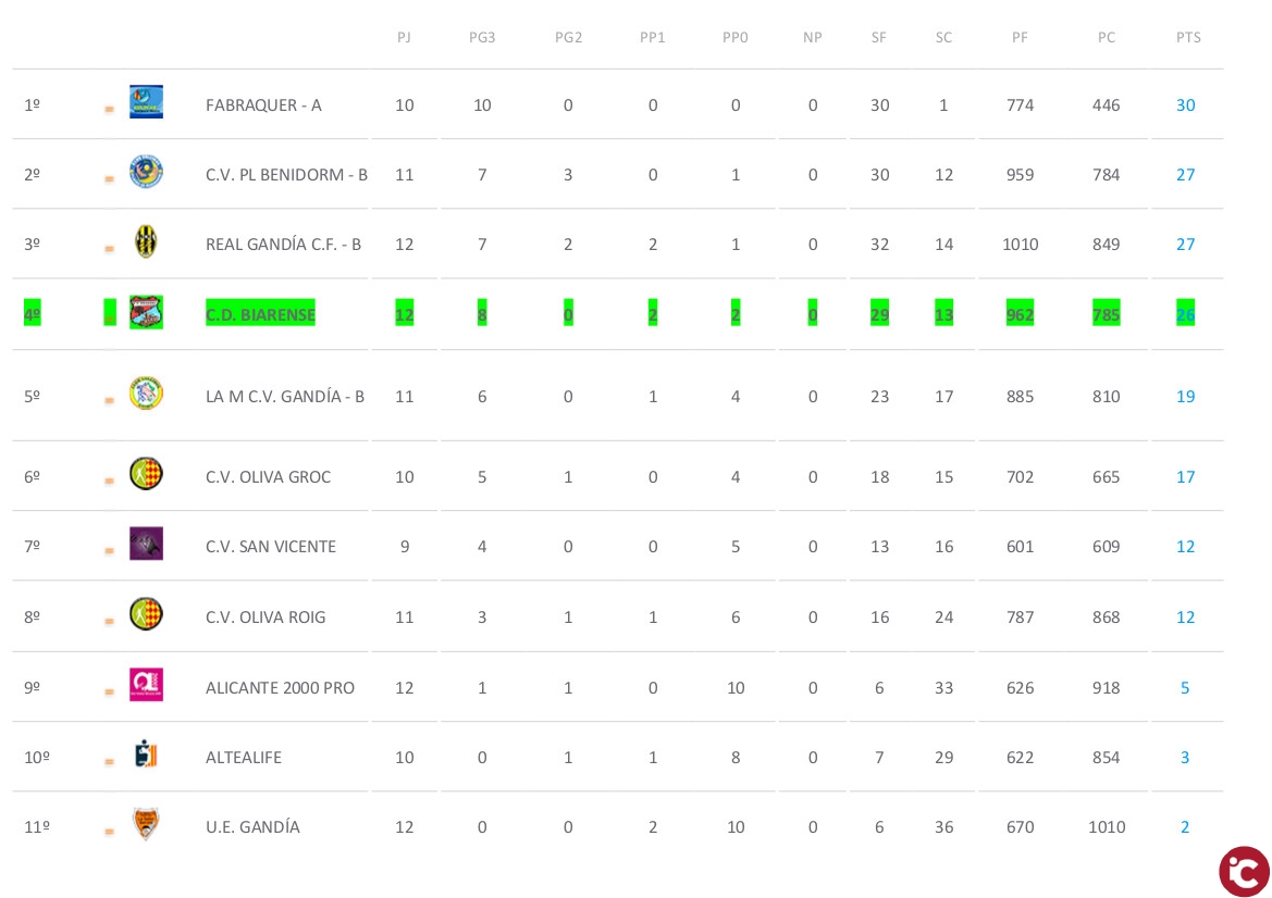 Des de la Regidoria d’esport ens envíen els ressultats i clasificaciones oficials dels equips federats de Biar.
